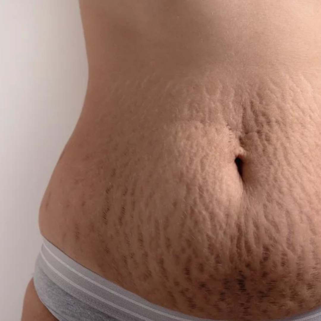 - Stretch marks caused by pregnancy, growth spurts, weight gain/loss, or rapid muscle development